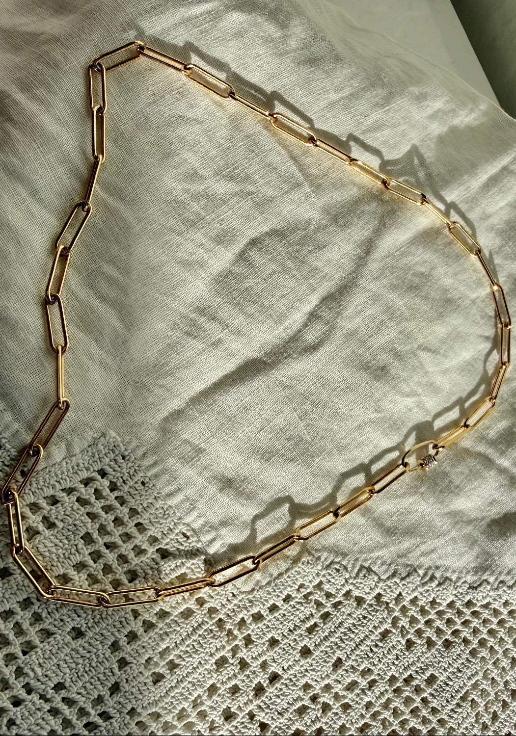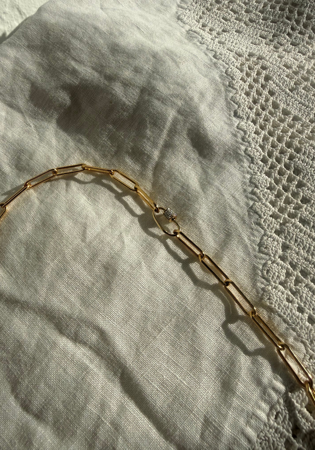Our JEANE 14K solid carabinier with natural diamonds necklace on a paperclip 14k Gold Fill necklace is the perfect demure statement piece for your everyday.